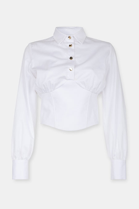Košulja sa naglašenim strukom dizajnirana je tako da istakne siluetu i pruži moderan, ženstven izgled. Poseban kroj sa vezivanjem pozadi omogućava prilagođavanje u struku, čime se postiže uvučen i definisan oblik, bez gubitka udobnosti. Klasična kragna i dugi rukavi daju košulji balans između elegancije i savremenog dizajna, što je čini pogodnom kako za formalnije prilike, tako i za svakodnevne kombinacije. Zahvaljujući svojoj formi, lako se uklapa uz pantalone, suknje ili farmerke. Ovaj model predstavlja spoj funkcionalnosti i izraženog dizajna, namenjen onima koji žele upečatljiv, ali nosiv komad garderobe.
