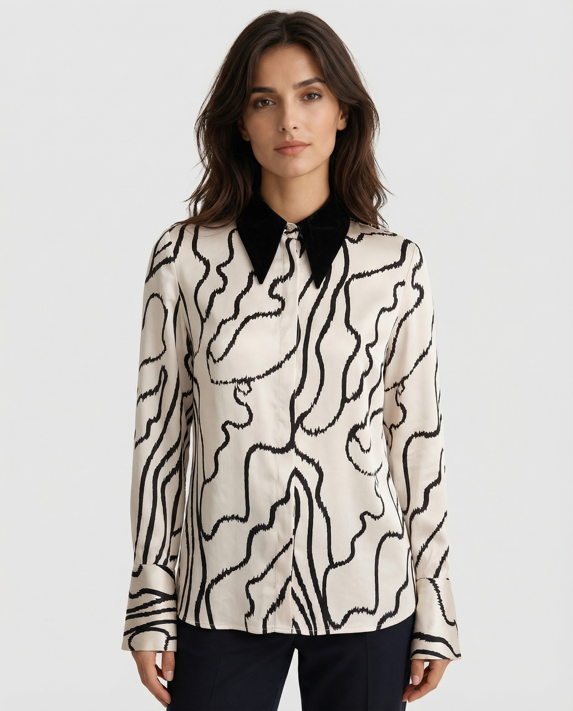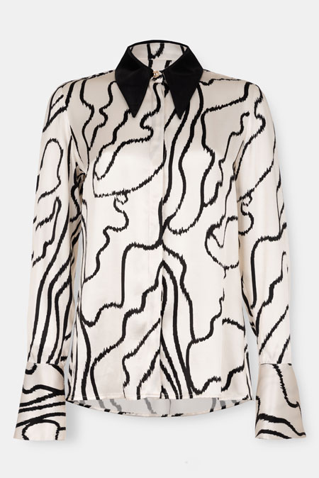 Košulja od viskoze sa naglašenom kragnom donosi upečatljiv spoj elegancije i savremenog dizajna. Izrađena od prijatne i lagane viskoze, pruža mekoću na dodir i prirodan pad materijala koji doprinosi sofisticiranom izgledu. Naglašena kragna u kontrastnom tonu daje modelu izražajan karakter, dok apstraktni dezen unosi dinamiku i modernu estetiku. Dugi rukavi sa definisanim manžetnama dodatno zaokružuju elegantnu siluetu. Model se lako kombinuje uz pantalone visokog struka, suknje ili sako, čineći ga pogodnim izborom za poslovne prilike, večernje izlaske ili situacije kada želite upečatljiv, ali rafiniran stil.