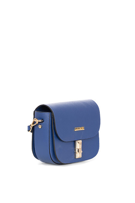 Kožna torba sa preklopom, ukrasnom kopčom i rajferslusom. Izrađena od prirodne kože, spoj je stila i praktičnosti, a odvojivi kaiš omogućava različite načine nošenja.