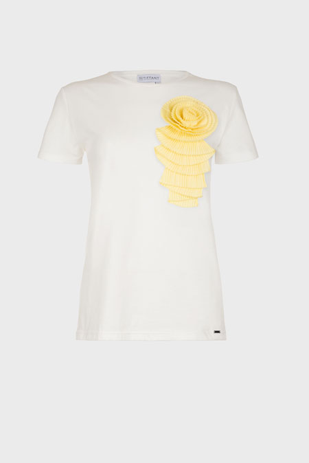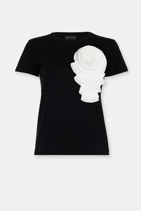 Ova ženska majica sa dekorativnim detaljem predstavlja spoj klasičnog kroja i upečatljivog dizajna. Izrađena je od 100% pamuka, što obezbeđuje prirodan osećaj na koži i udobnost tokom celog dana, dok dekorativni detalj na prednjem delu daje majici poseban karakter i vizuelnu dinamiku. Model je kratkih rukava, sa jednostavnom siluetom koja se lako uklapa u različite stilove — od ležernih dnevnih kombinacija do urbanih outfita sa izraženim modnim akcentom. Majica dolazi u beloj i crnoj boji, kao dve bezvremenske opcije koje se lako kombinuju. Idealna je za žene koje traže majicu koja nije basic, ali je i dalje nosiva, svestrana i prilagodljiva različitim prilikama. Dekorativni detalj čini ovaj model izborom za one koji žele suptilan statement u svakodnevnom stilu.