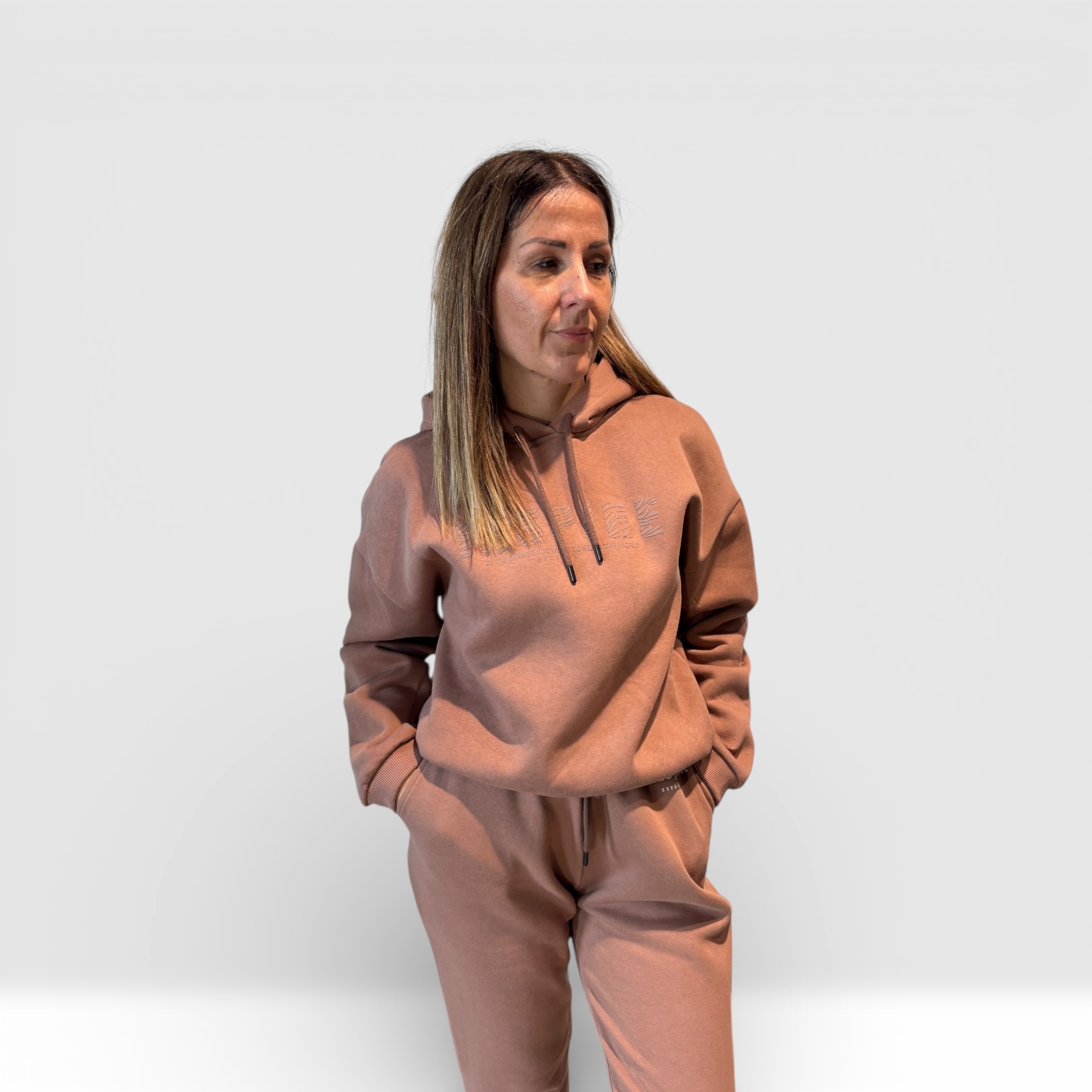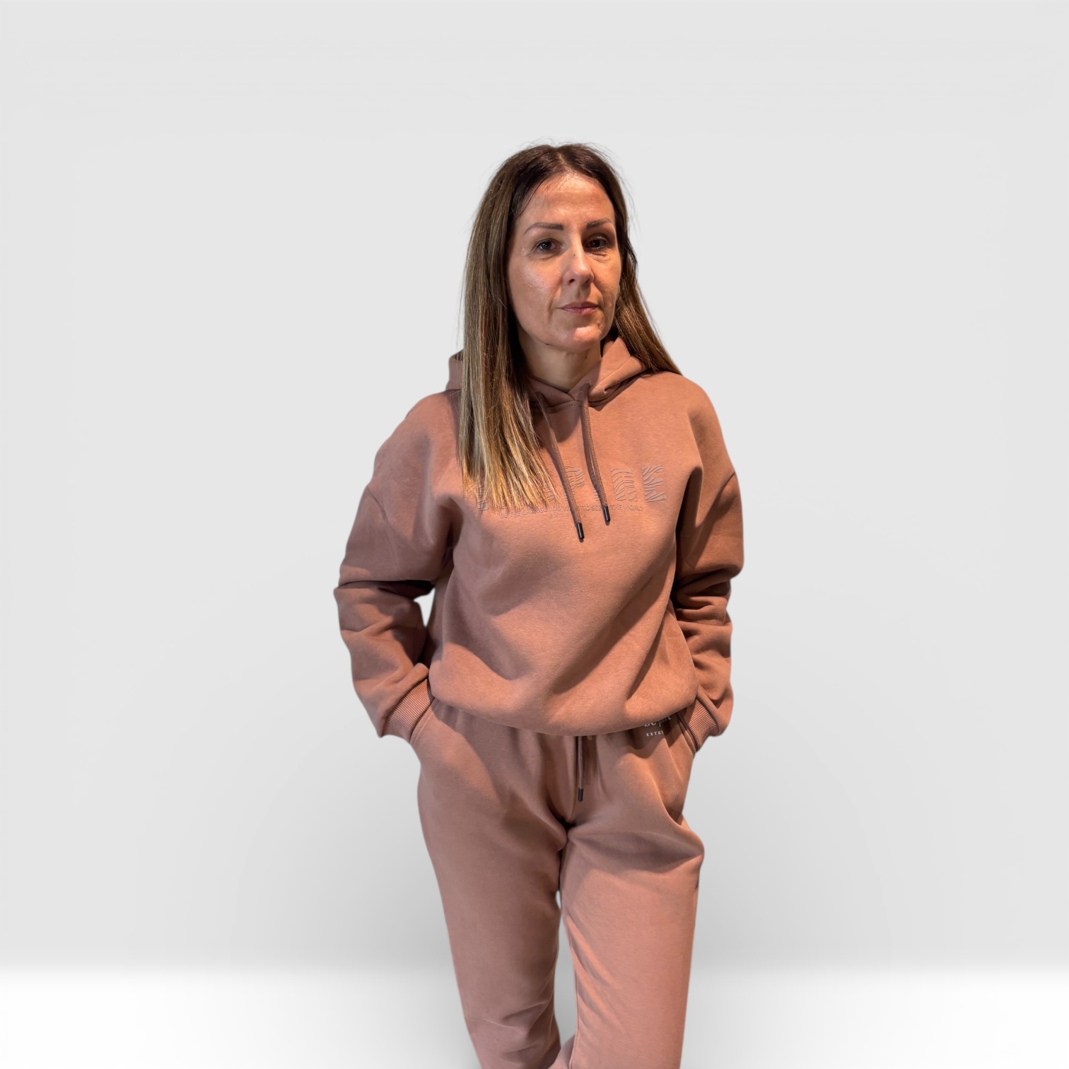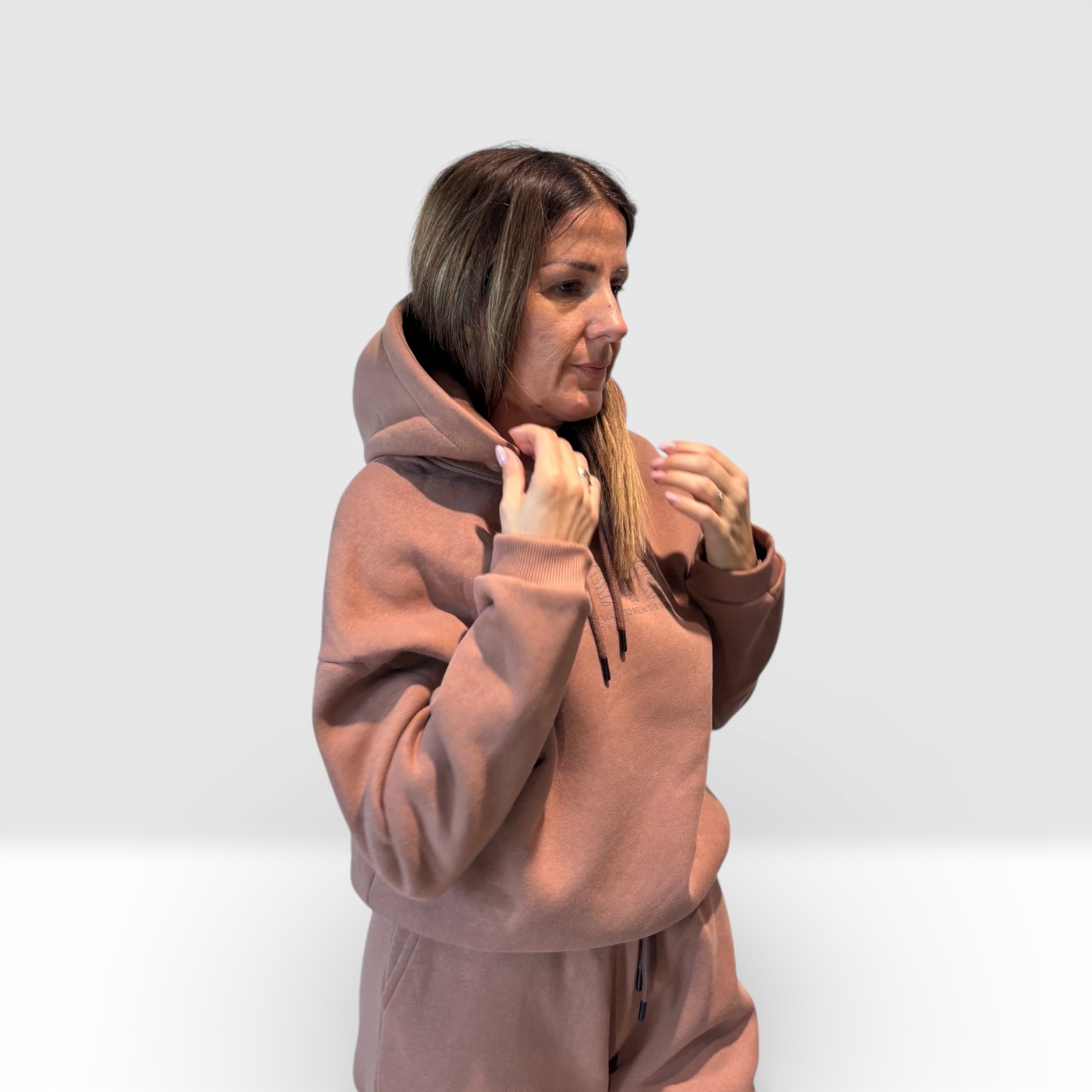 Ženski duks sa kapuljačom, izrađen od mekanog i prijatnog pamuka koji pruža maksimalnu udobnost tokom celog dana. Klasičan kroj sa diskretnim natpisom na prednjem delu i podesivim učkurima čini ga idealnim za svakodnevne, opuštene kombinacije.
